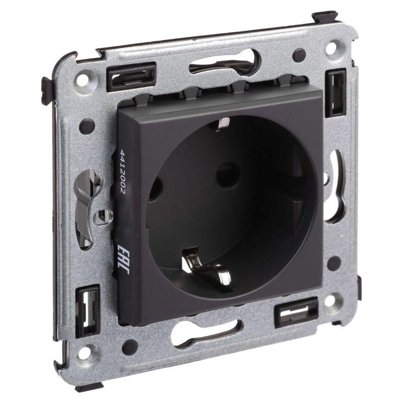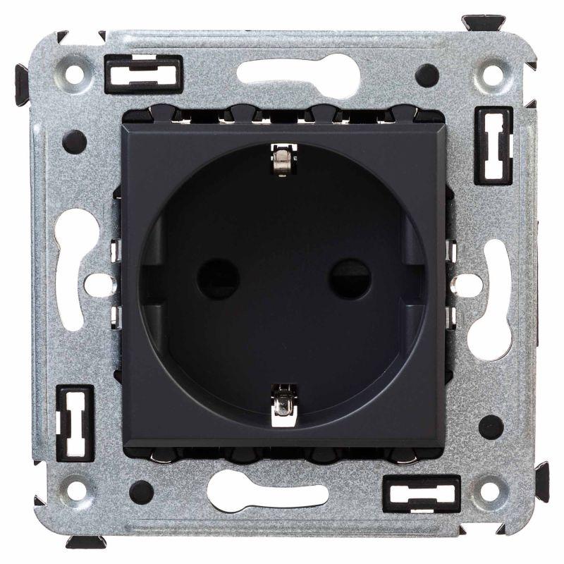 Розетка 1-м СП 2мод. Avanti "Черный матовый" 16А 2P+E защ. шторки механизм черн. DKC 4412003