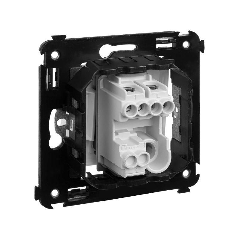 Кнопка одноклавишная. Назначение: для монтажа в подрозеточные коробки глубиной не менее 45 мм (код 59301). Используется в качестве кратковременного включения источника питания энергией. Характеристики: 2 модуля, диаметр отверстий для ввода кабелей – 3 мм (по 2 отверстия на одну клемму); винтовые зажимы; шаблон для зачистки кабеля – 11 мм; номинальный ток – 10 A; номинальное напряжение – 230 В; фиксация в подрозеточные коробки при помощи каркаса с лапками (код 4400802) и саморезов. Цвет: "Ванильная дымка".