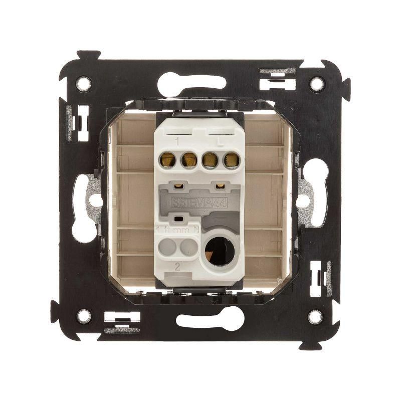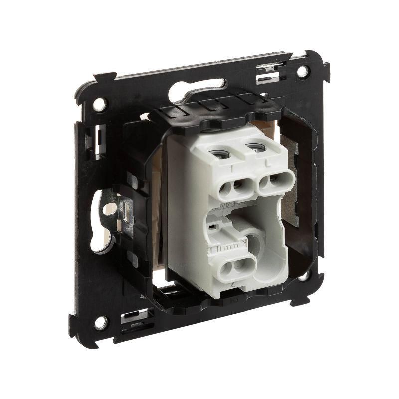 Кнопка одноклавишная. Назначение: для монтажа в подрозеточные коробки глубиной не менее 45 мм (код 59301). Используется в качестве кратковременного включения источника питания энергией. Характеристики: 2 модуля, диаметр отверстий для ввода кабелей – 3 мм (по 2 отверстия на одну клемму); винтовые зажимы; шаблон для зачистки кабеля – 11 мм; номинальный ток – 10 A; номинальное напряжение – 230 В; фиксация в подрозеточные коробки при помощи каркаса с лапками (код 4400802) и саморезов. Цвет: "Ванильная дымка".