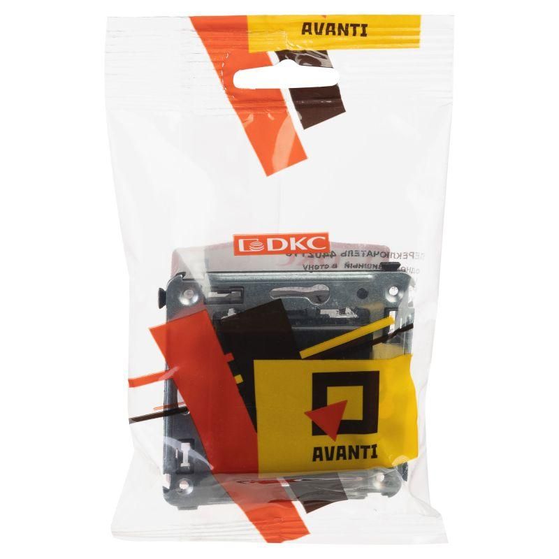 Задача переключателя – управление освещением из двух точек. Он позволяет включить/выключить свет из удобной точки – например, в спальне переключатель может размещаться возле кровати. Переключатель предназначен для скрытого монтажа в стену. Номинальное напряжение – 230 В, номинальный ток – 16 А. Пластиковые части электроустановочного изделия имеют цвет "Черный квадрат". Этот оттенок – жемчужина серии "Avanti". Загадочный, многозначный и глубокий, он несет в себе отпечаток идей русского авангарда.