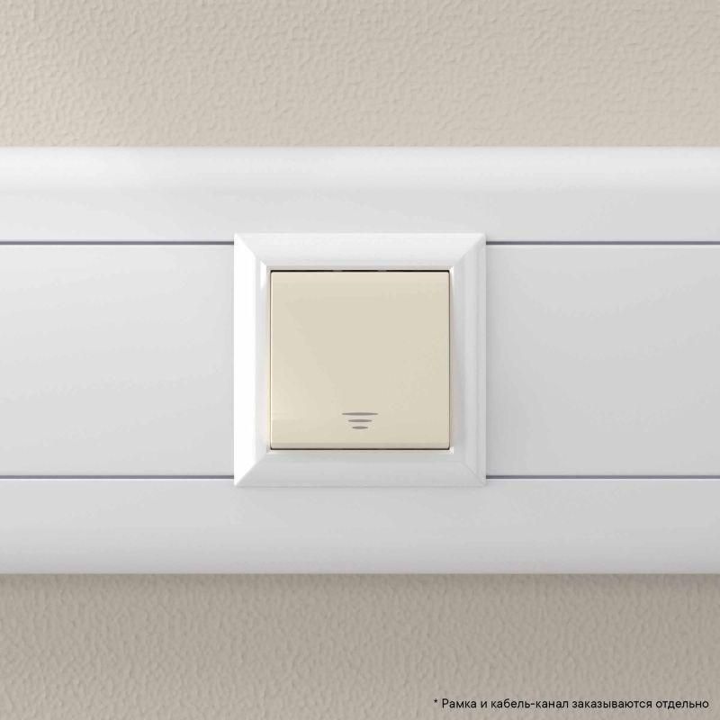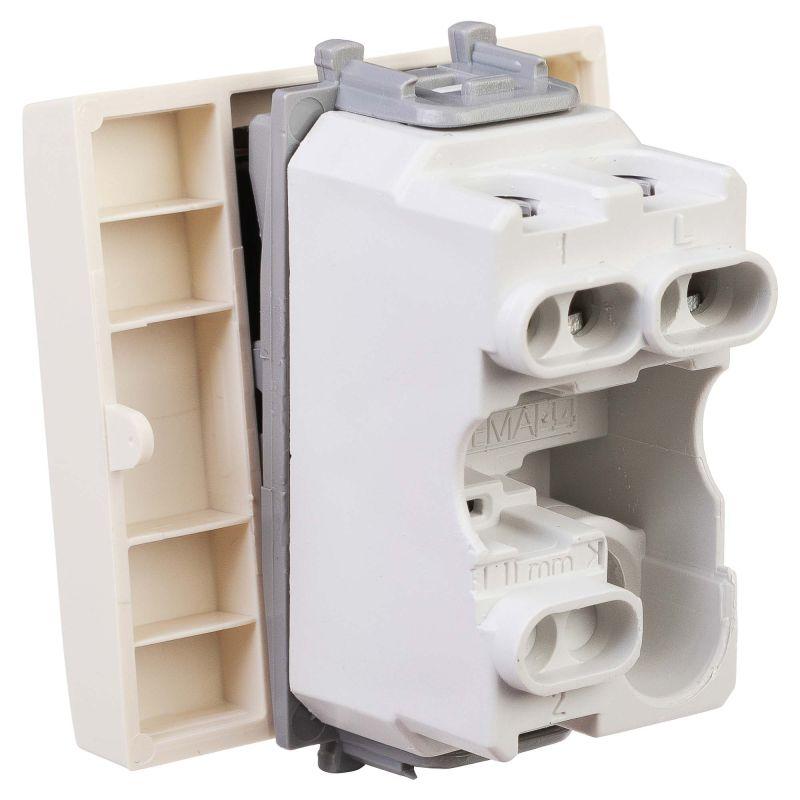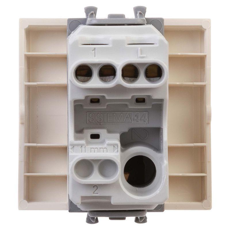 Выключатель одноклавишный однополюсный, модульный. Предназначен для монтажа в системы "In-liner Front" и "In-liner Aero" при помощи рамок-суппортов и каркасов "Avanti" (код 4400912 и т.д.); Используется для включения/выключения освещения. Характеристики: диаметр отверстий для ввода кабелей – 3 мм (по 2 отверстия на одну клемму); винтовые зажимы; шаблон для зачистки кабеля – 11 мм; номинальный ток – 16 A; номинальное напряжение – 230 В; возможна фиксация в подрозеточные коробки при помощи каркаса с лапками (код 4400802) и саморезов. 2 модуля. Цвет: "Ванильная дымка".